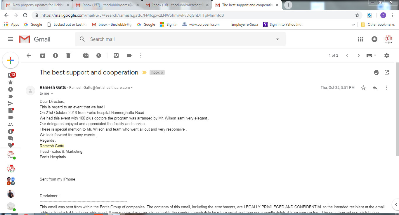 Fortis Hospital Doctors meet on 21-10-2018 |