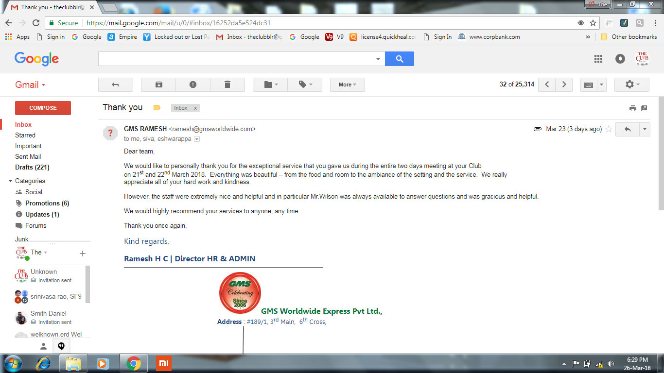 GMS World Wide Express Pvt. Ltd. 2 Day Conference on 21 & 22-03-2018 |